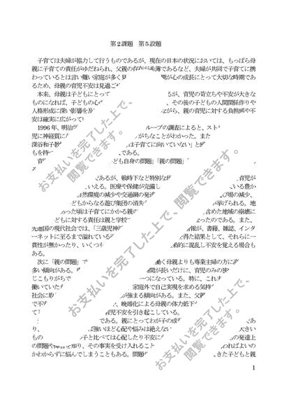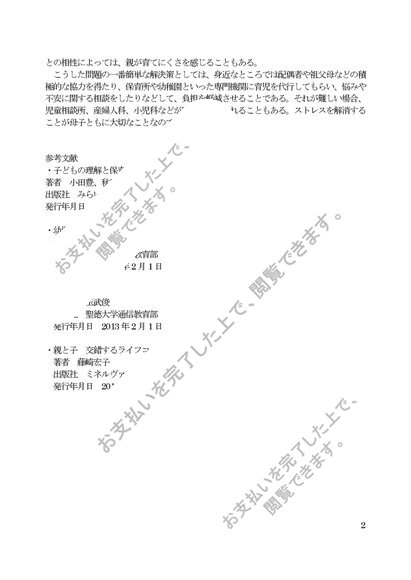 聖徳大学「幼児理解・保育相談」 第2課題第5設題 評価A 合格