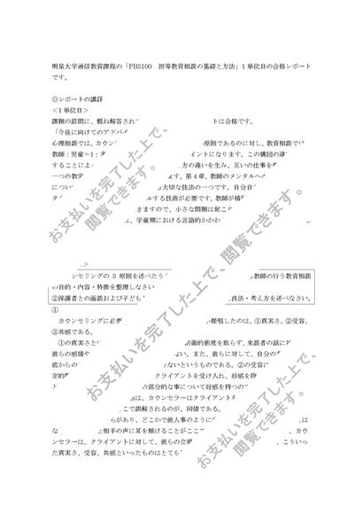 2015年度・2016年度 PB3100 初等教育相談の基礎と方法 1単位目 合格レポート