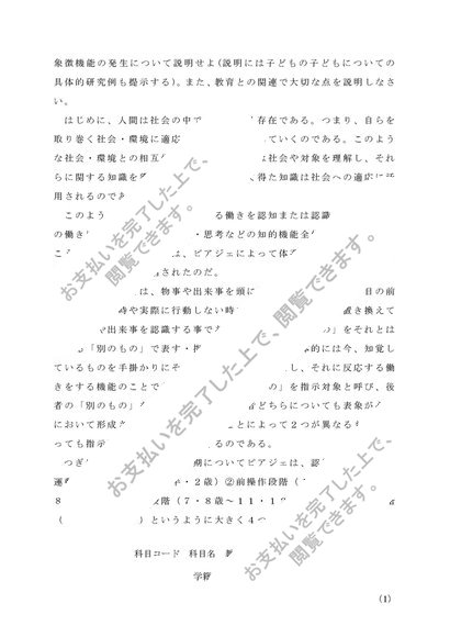 S0105 教育心理学 第1設題 レポート 2016年 佛教大学