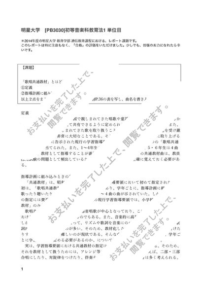 【2014年度】明星大学[PB3030]初等音楽科教育法1単位目