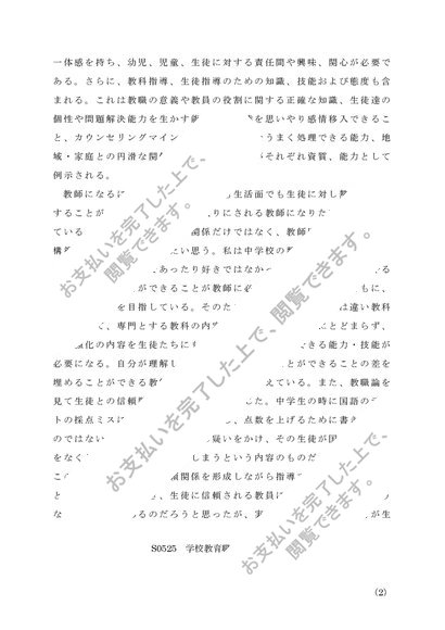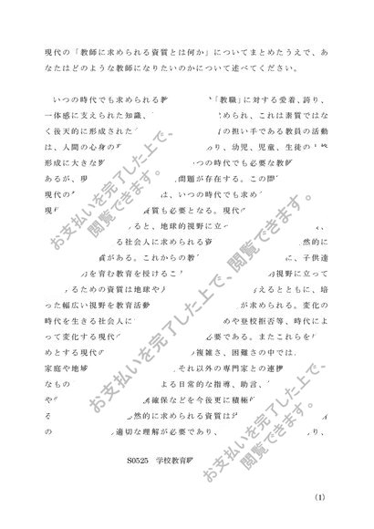 S0525 学校教育職入門 A判定レポート