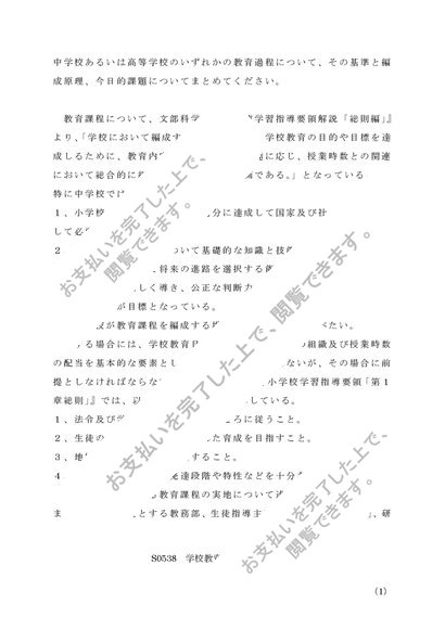 S0538 学校教育課程論 A判定レポート