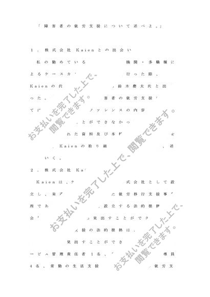 就労支援レポート&科目修了試験①~⑥セット(障害者の就労支援について述べよ)