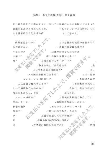 P6701 異文化理解(西欧) 第1設題