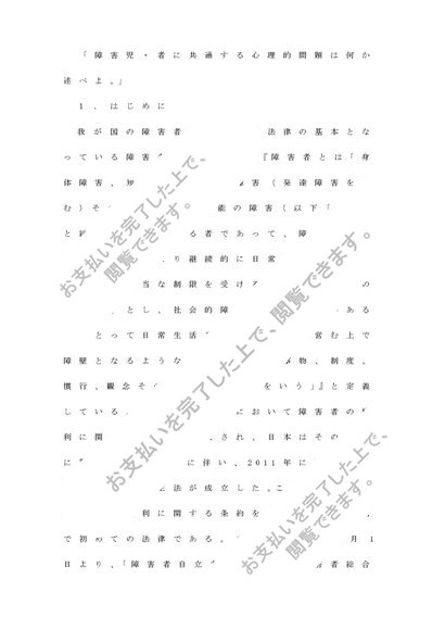 障害児・者の心理レポート&科目修了試験①~⑥セット(障害児・者に共通する心理的問題は何か述べよ)