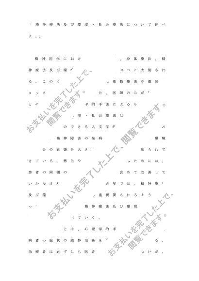 精神医学レポート課題 2&科目修了試験④~⑥セット(精神療法及び環境・社会療法について述べよ)