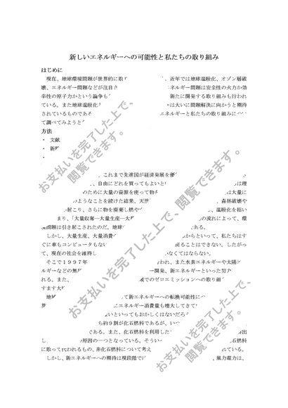 化学レポート「新しいエネルギーへの可能性と私たちの取り組みへの考え」①