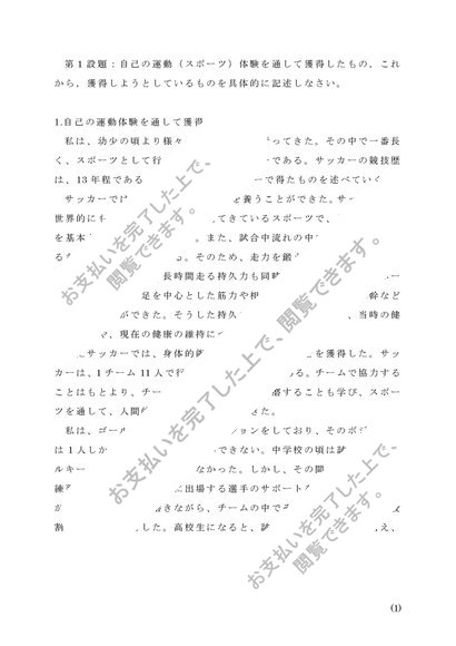 【新テキスト】【2016年度合格リポート】Z1002 スポーツ論入門 第1設題 A判定