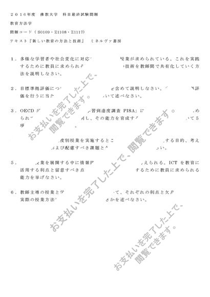 教育方法学 科目最終試験問題6題