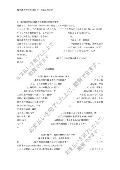 中央大学通信民法1 第1課題 権利能力なき社団について論じなさい