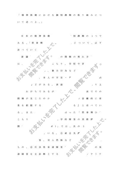 精神保健学レポート設題Ⅱ&科目修了試験④~⑥セット(精神保健における個別課題の取り組みについて述べよ)