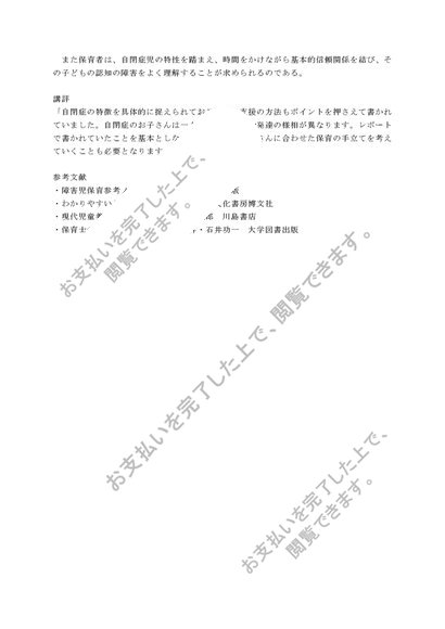 聖徳大学「障害児保育」第一課題第二設題 合格 評価A 講評付き