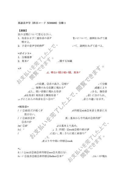 平成27~29年、日大通信、合格レポート、英語音声学(科目コード N30600)分冊1