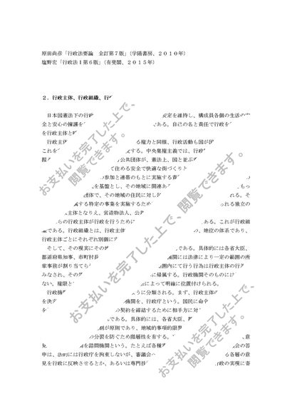法律による行政原理、行政主体・行政組織・行政機関・行政庁について