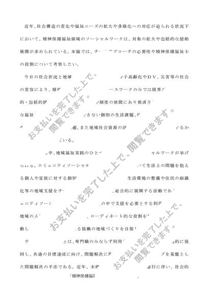 精神保健分野におけるチームアプローチの必要性と精神保健福祉士の役割について述べよ。(A評価/1800字程度)