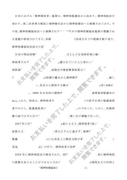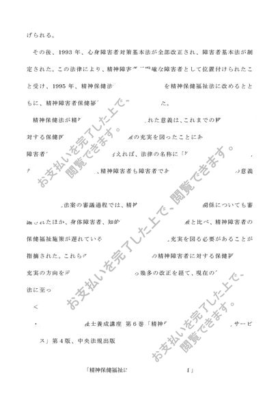 精神保健福祉法の成立までの歴史的経緯と意義をその改正に至る課題も考察し、論述せよ。(A評価/1800字程度)