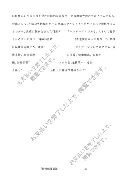 地域移行支援体制を構築する上で、精神保健福祉士の役割について述べよ。(B評価/1800字)