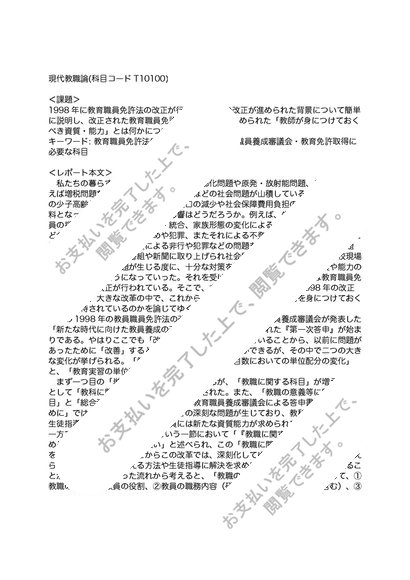 [日大通信 平成29~30年度] 現代教職論 合格レポート