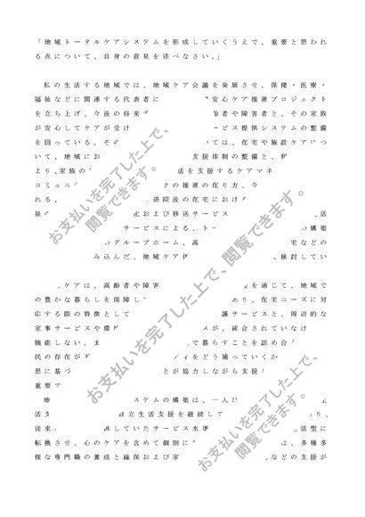地域トータルケアシステムを形成していくうえで、重要と思われる点について、自身の意見を述べなさい。
