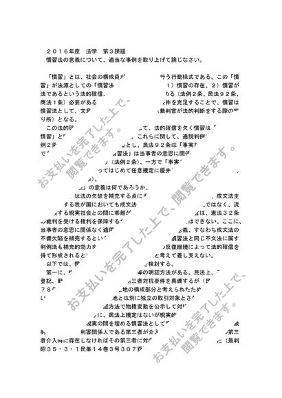 【中央 通信 2016年度】 法学 第3,4課題 合格レポートセット