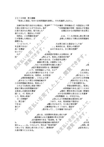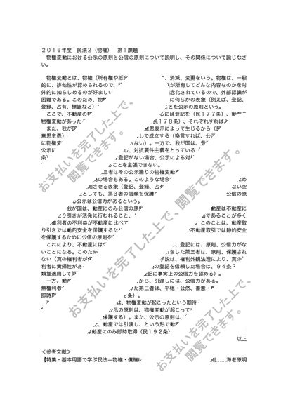 【中央 通信 2016年・2017年度共通】民法2(物権) 第1,2課題 合格レポートセット
