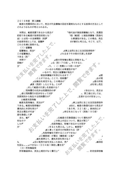 【中央 通信 2016年・2017年度共通】 民法2(物権)第3,4課題 合格レポートセット
