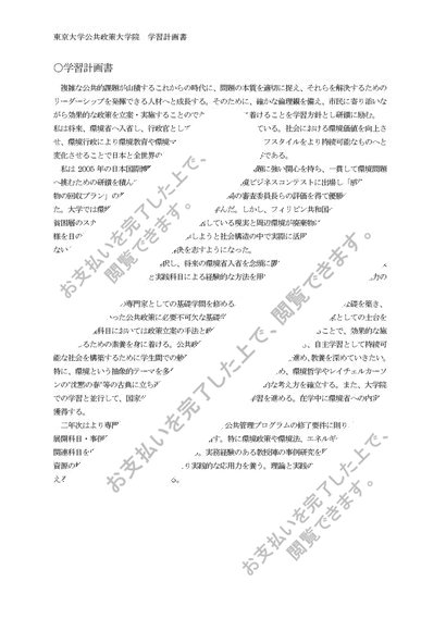 東京大学公共政策大学院 学習計画書[合格]