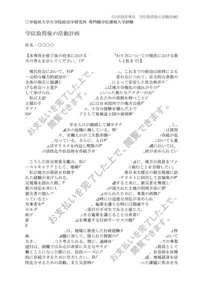 早稲田大学大学院政治学研究科 学位取得後の活動計画[合格]