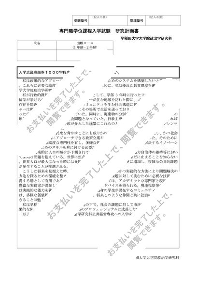 早稲田大学大学院政治学研究科 研究計画書[合格]