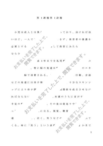 聖徳大学「乳児保育」第一課題 合格 評価A