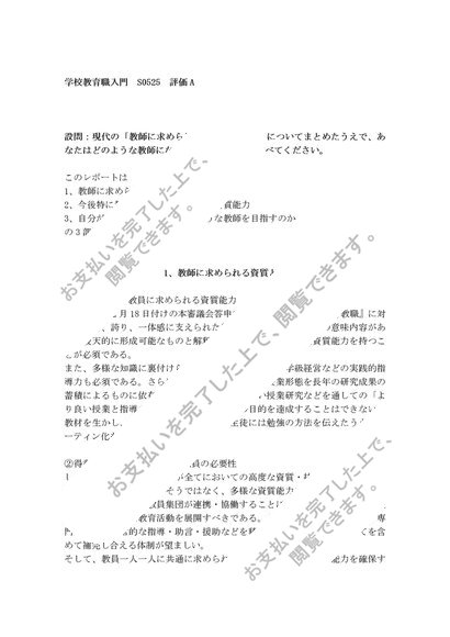 2016年度 学校教育職入門 S0525 A評価