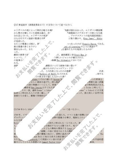 P6301【合格済みテスト解答】【一発合格】英文学史 6題セット【科目最終試験】