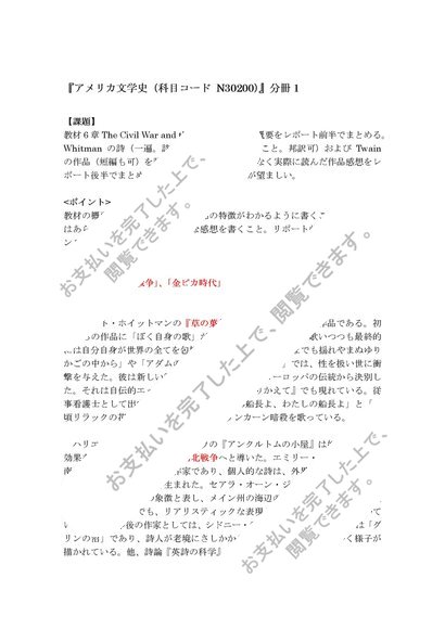 平成27~29年、日大通信、合格レポート、アメリカ文学史(科目コード N30200)分冊1