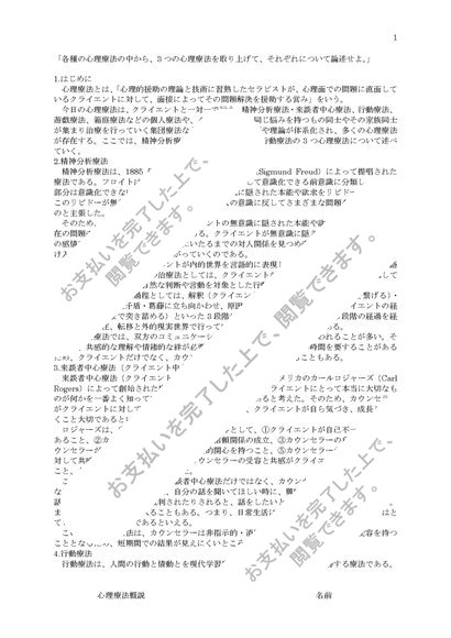 各種の心理療法の中から、3つの心理療法を取り上げて、それぞれについて論述せよ