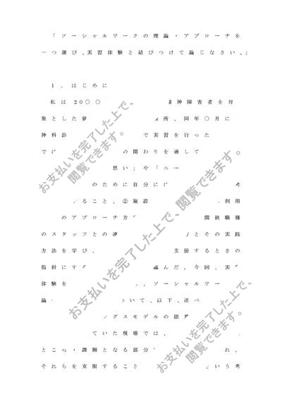 精神保健福祉援助演習Ⅲレポート(ソーシャルワークの理論・アプローチを一つ選び、実習体験と結びつけて論じなさい)