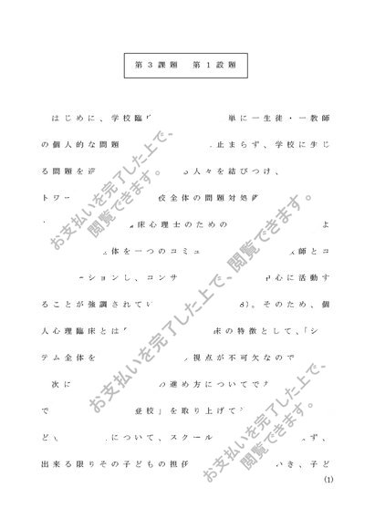 聖徳 通信 学校臨床心理学 第3課題 評価S