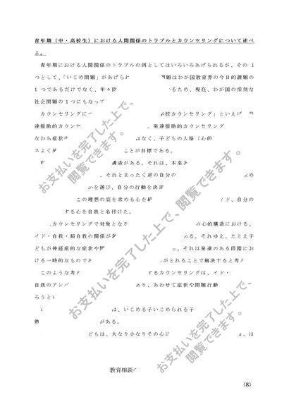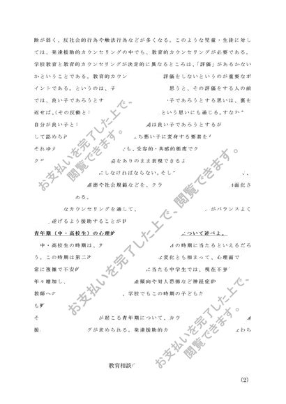 佛教大学 教育相談の研究(中・高) 科目最終試験対策(6題) 2018