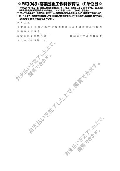 《明星大学通信》PB3040:初等図画工作科教育法 1単位目★2016年度 一発合格レポート