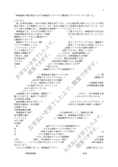 地域福祉の概念規定における機能的アプローチと構造的アプローチについて