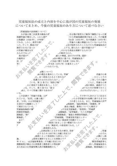 児童福祉法の成立と内容を中心に我が国の児童福祉の発展と今後の児童福祉のあり方について