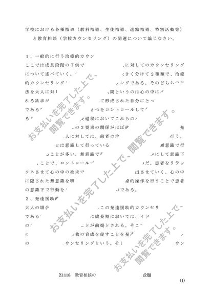 佛教大学 2016年度 Z1118 教育相談の研究(中・高) A判定 レポート