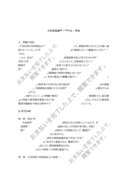 不法利得課税研究計画書