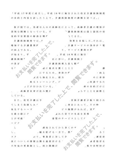 平成17年度に成立し、平成18年に施行された改正介護保険制度の目的と内容を記したうえで、介護保険制度の課題を述べなさい。