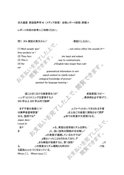 日大通信 英語音声学M (メディア授業) 合格レポート試験:評価A