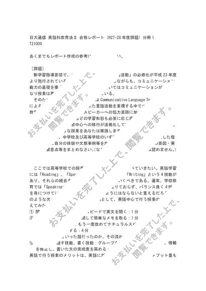 日大通信 英語科教育法Ⅱ 合格レポート (H27-28年度課題) 分冊1