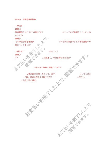 2017年 明星大学 通信 PB2100「初等教育課程論」 1・2単位目合格レポートセット