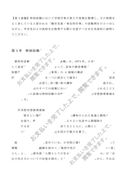 Z1116 特別活動研究 (中・高)第一設題(2016年度) A判定