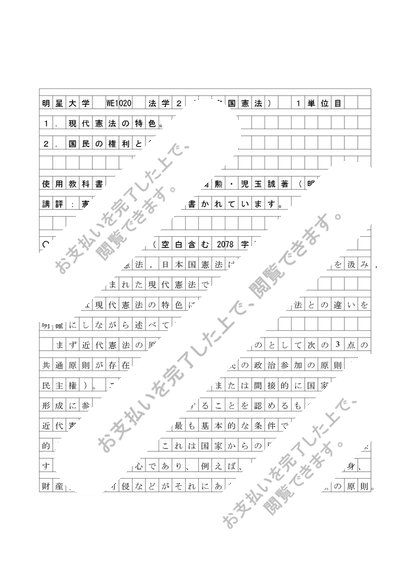 【明星大学】 通信教育 教育学部 WE1020 法学2 1単位目 合格レポート