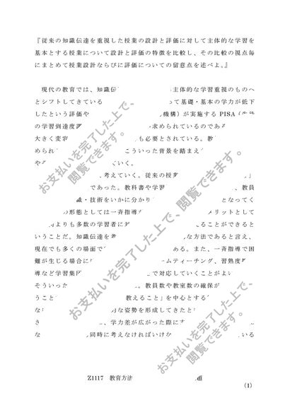 【佛教大学】Z1117 教育方法学1(中・高) 第1設題 2016年度提出 A評価【レポート】