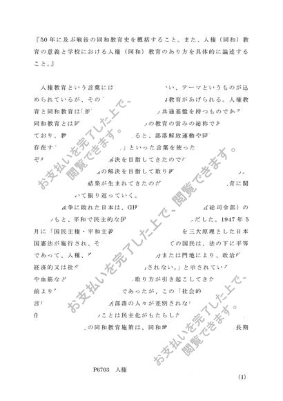 【佛教大学】P6703 人権(同和)教育 第1設題 2016年度提出 C評価【レポート】